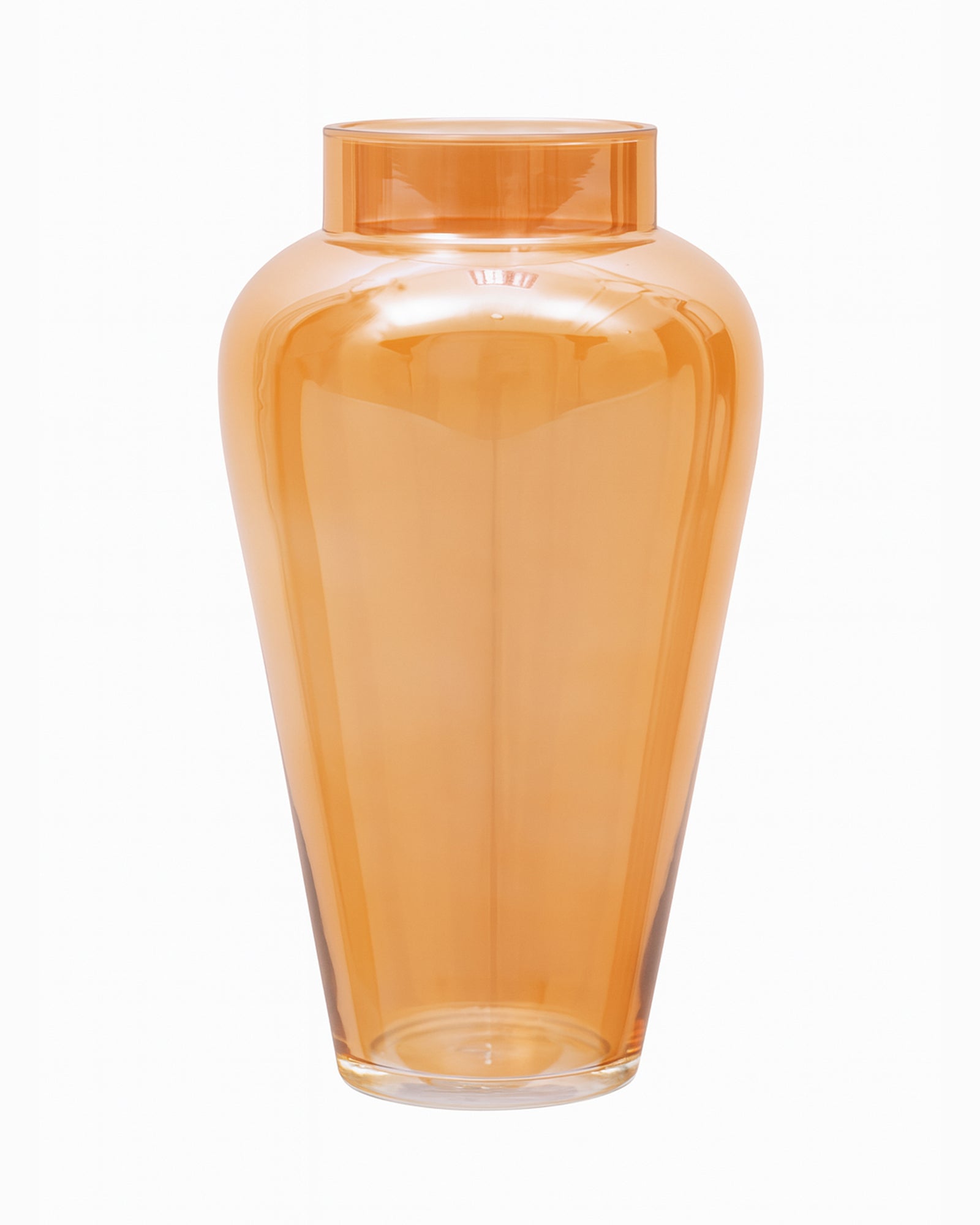 Add modern elegance to your space with this Amber gold glass vase. Standing 20.9 cm tall with a classic urn silhouette, it features a 10.7 cm width and a 5.7 cm base. The smoky tint adds a sleek, contemporary touch while remaining transparent—ideal for fresh flowers, dried stems, or branches. Its neutral tone complements any décor, and the smooth, polished finish offers timeless appeal. wedding gift for friend, vases living room, vases, vase home decor, vase, room, table showpiece, decoration items, small showpieces, showpiece decor unique, home, gift, bedroom, show piece case decorative Flower Vase.