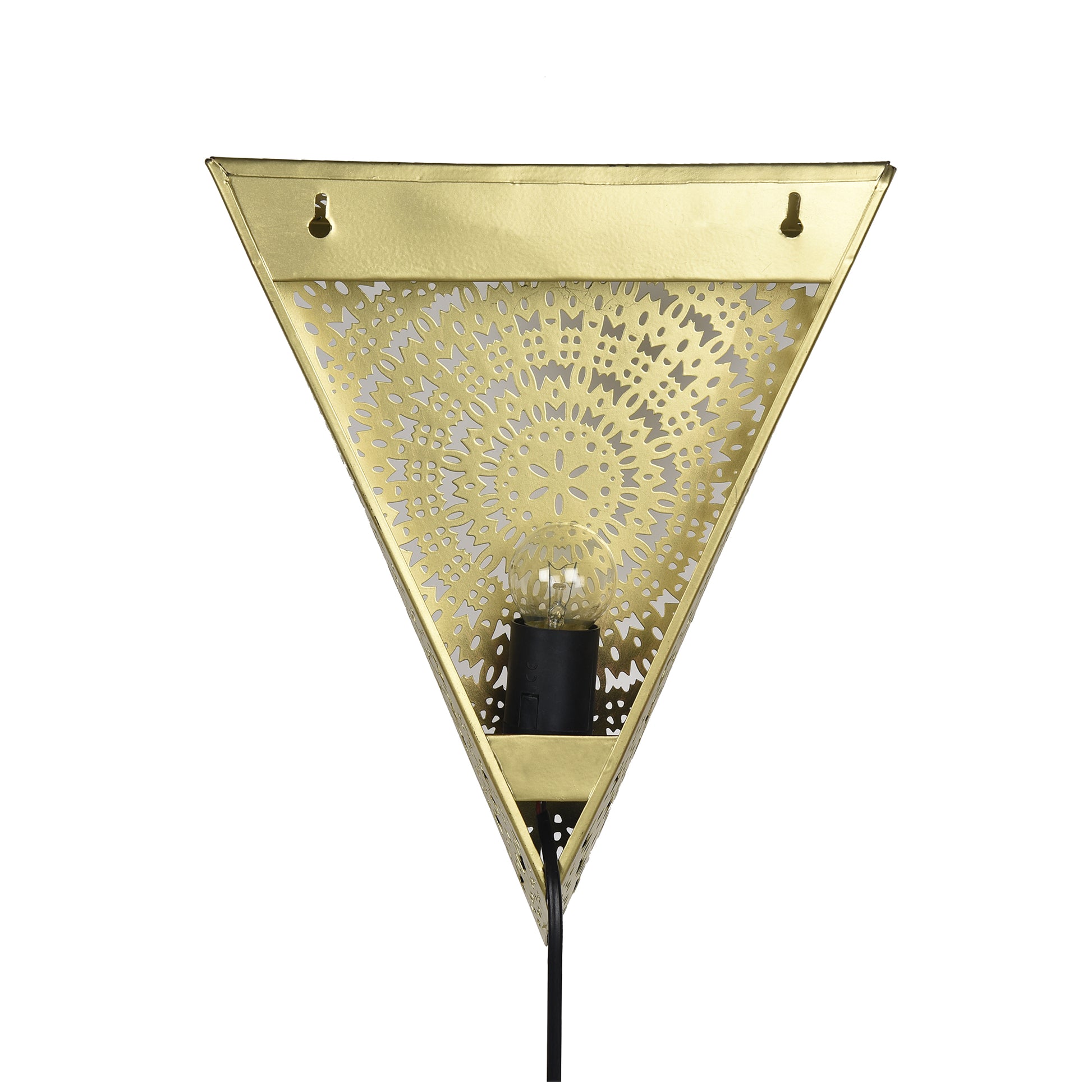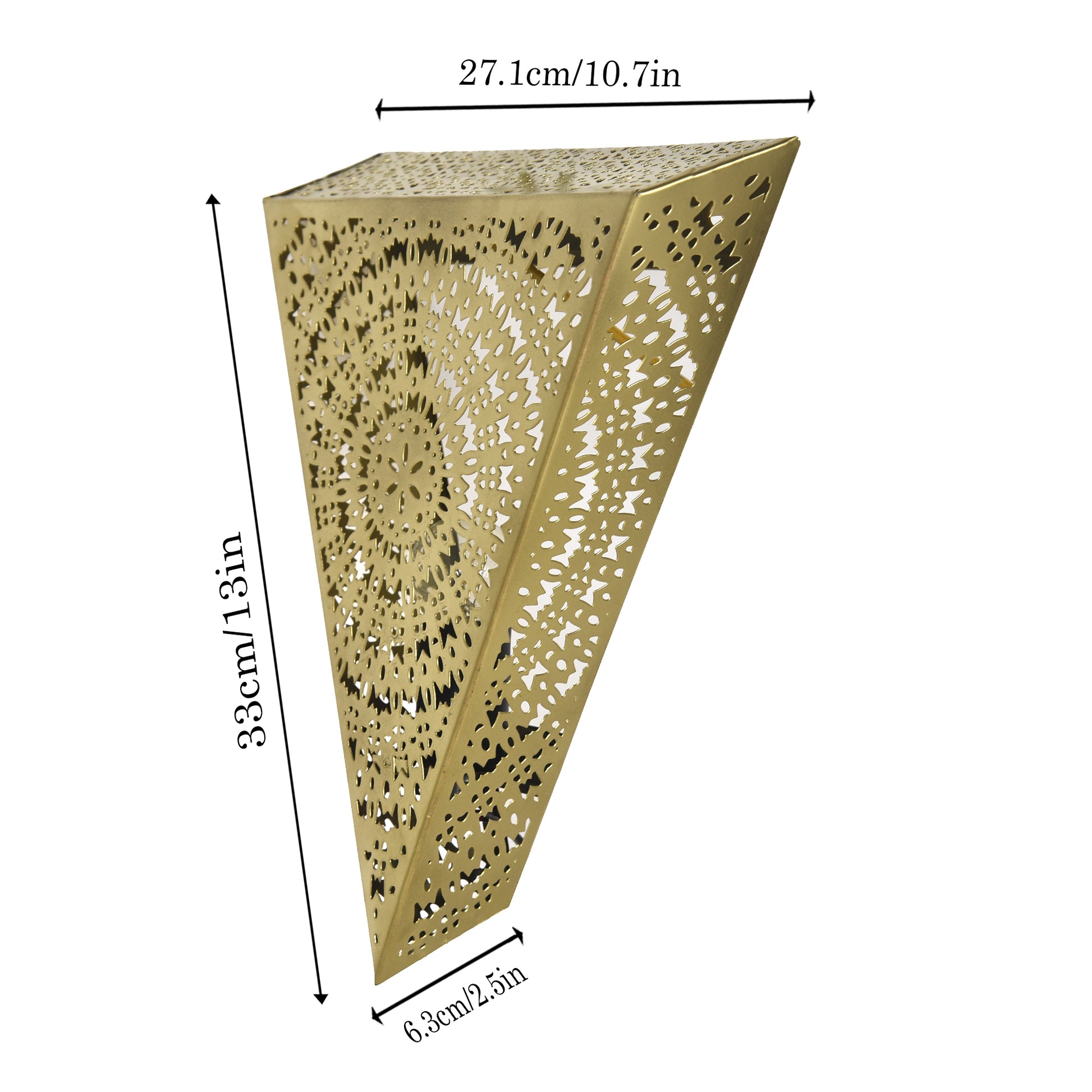 Turkish Moroccan Wall Sconce Lamp, Vintage Hand Carved Metal Wall Light, Wall Mounted Porch Light, Brass Finish for Home,Villa, Kitchen, Restaurant, Triangle