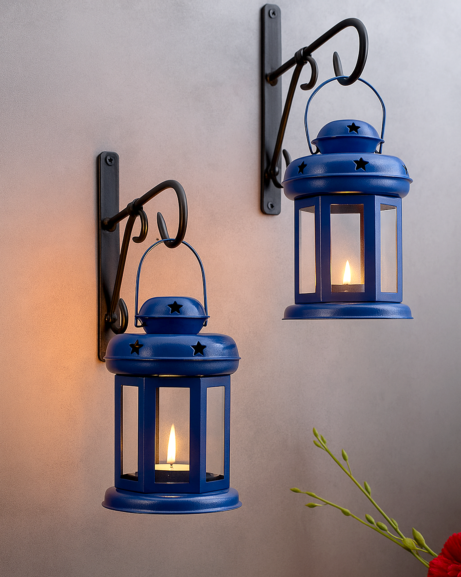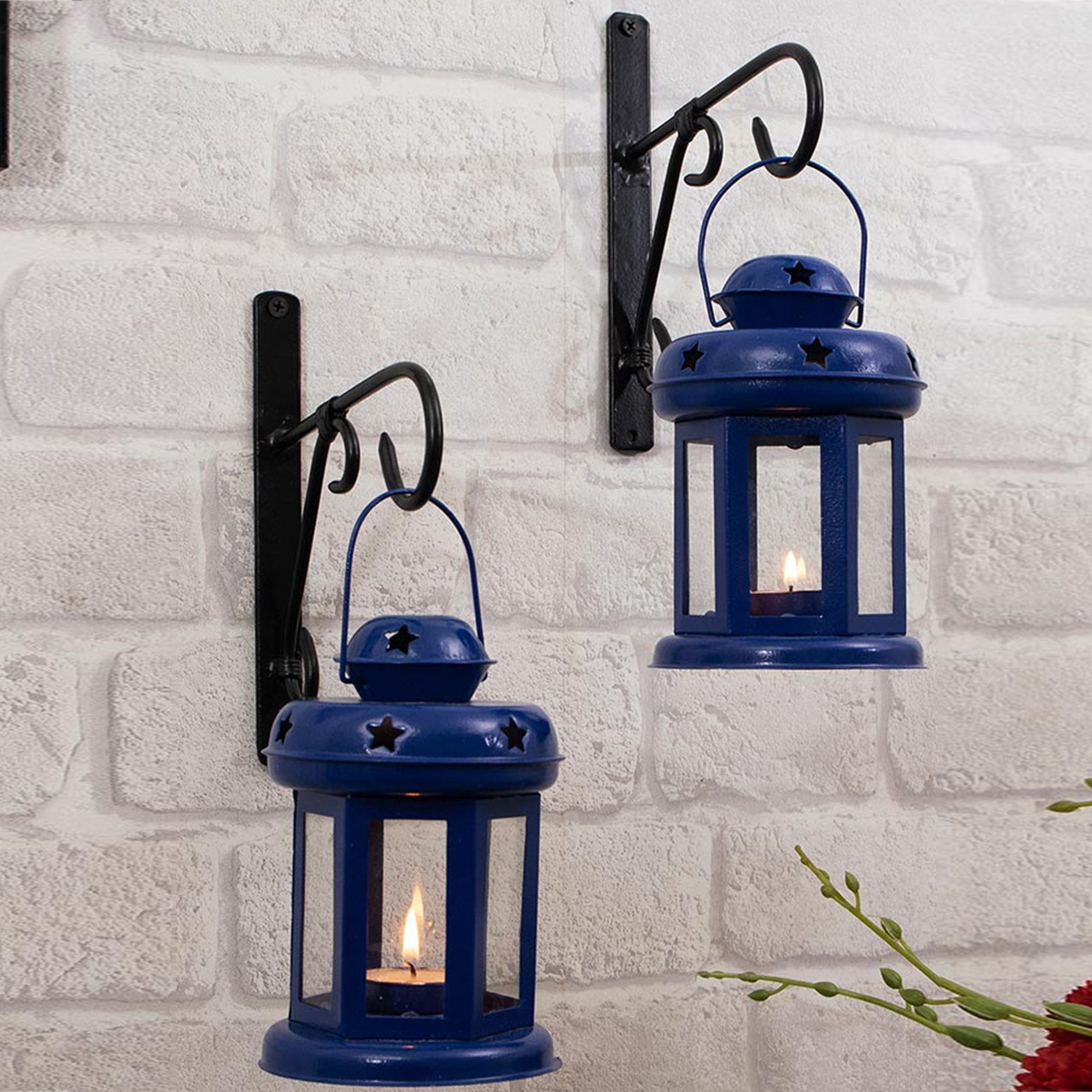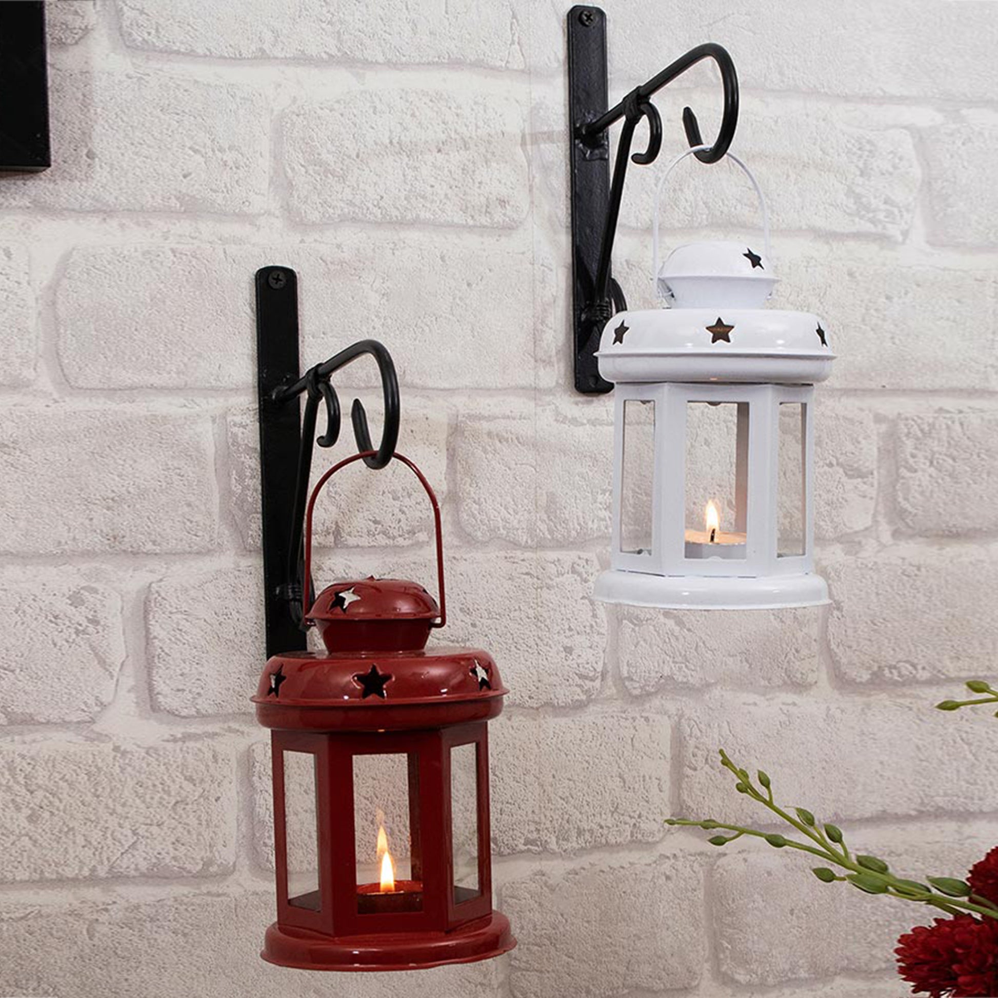 Wall Star Light Decorative Metal Lantern Indoor/Outdoor Hanging Lantern, Set of 2 Designer Candle Tealight Holder with Wall Hook