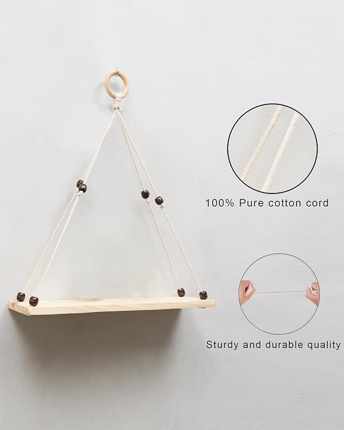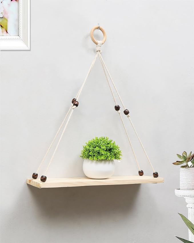 - VERSATILE STYLE :- Hung off a hook on the ceiling or wall and this macrame shelf hanging planter is perfect for display your beloved plant, succulents, cactus, vases, books, or decorations to create beautiful and comfortable boho home decor, let your room more vitality.