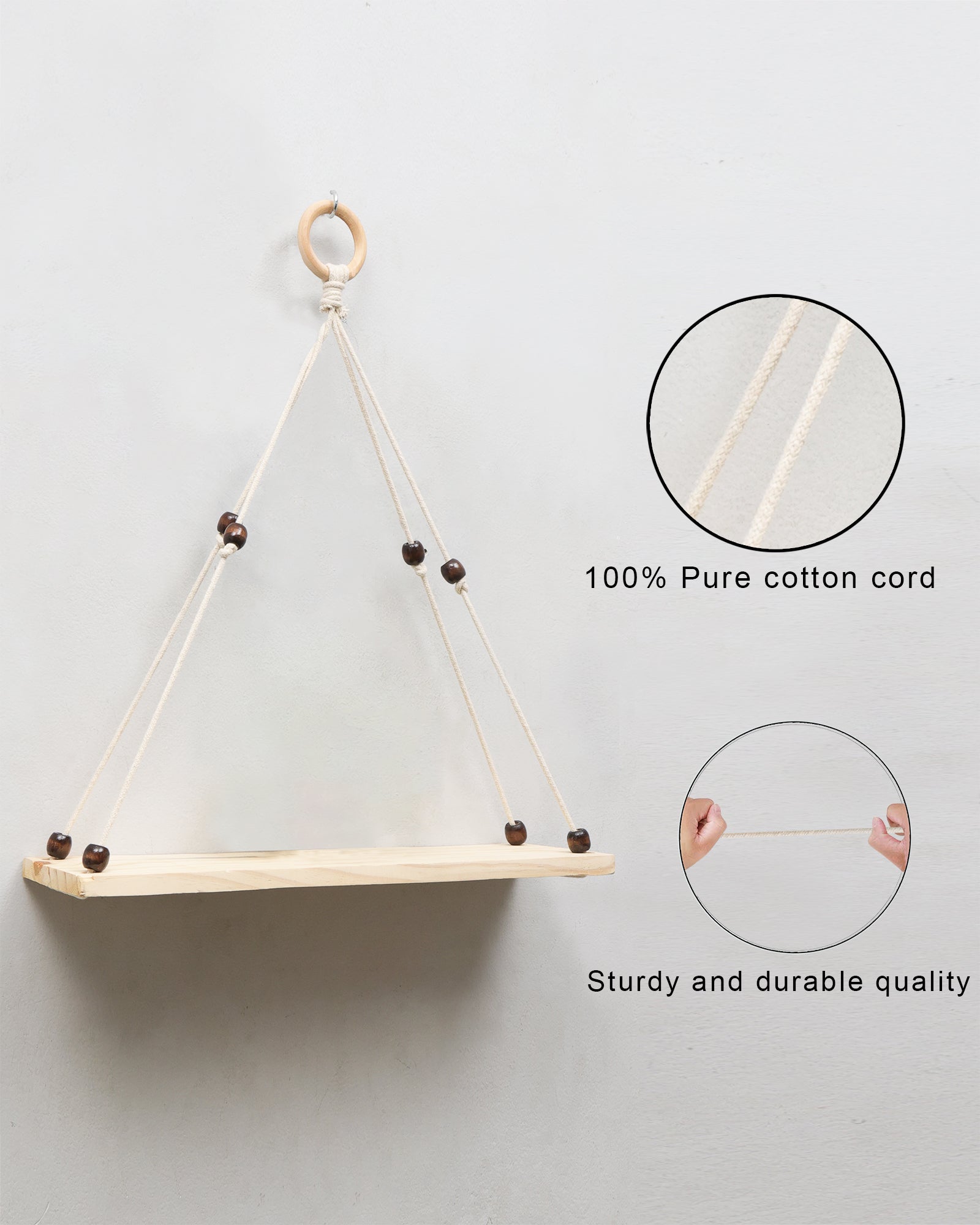 - MATERIAL :- Macrame plant holder is made of natural cotton rope and pine shelf, fine workmanship, natural and durable. Simple and practical design, make your home decoration more delicate.